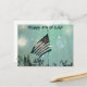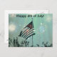 Um cartão de posto especial para o Dia da Independência. Tem uma bandeira americana nele e algumas estrelas e fogos de artifício.