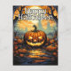 Este cartão-postal do Feliz Dia das Bruxas criativo mostra uma ilustração de uma abóbora sinistra que parece brilhando, no fundo da floresta. Sinta-se à vontade para ajustar todas as opções disponíveis, conforme desejar.