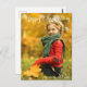 Elegante cartão postal de foto de Feliz Ação de Graças com bela tipografia cursiva em branco sobre sua fotografia de outono. Este cartão dobrado de fotografia moderna da família outonal apresenta linda escrita e seu nome em branco sobre a imagem de férias sazonal de página inteira.