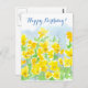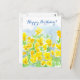 Um cartão de aniversário alegre e alegre, decorado com um jardim de flores amarelas brilhantes/Johnny Salta-Cima pintado em aquarela. Você pode alterar ou excluir o texto para ajustado das suas necessidades.