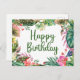 Cartão Postal Feliz Aniversário Aquarela Folhas e Flores Tropica