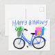Cartão Postal FELIZ ANIVERSÁRIO Bicicleta Azul Fofa Personalizad