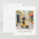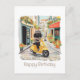 Cartão Postal Feliz Aniversário Black Doodle Andando de Patinete