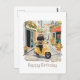Cartão Postal Feliz Aniversário Black Doodle andando de Scooter