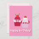Cartão Postal Feliz Aniversário - Bolinhos de Morango Rosa Fofo