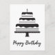 Bolo de aniversário simples de três andares preto e branco. Feliz Aniversário!