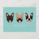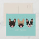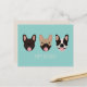 Cartão Postal Feliz Aniversário Bulldog Francês Azul-Celeste