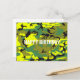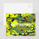 Cartão Postal Feliz Aniversário Camuflagem Amarelo Verde Abstrat