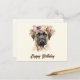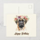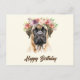 Cartão Postal Feliz Aniversário Cão Mastim Inglês com Flores