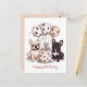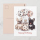 Cartão Postal Feliz Aniversário Chapéus de Festa Bulldog Francês