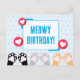 Cartão Postal Feliz Aniversário com Patinhas de Gato Pontos Azui