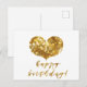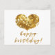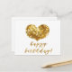 Cartão Postal Feliz Aniversário! Coração de Brilho Dourado Glamo
