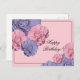 Cartão Postal Feliz Aniversário das Flores Rosa e Roxo