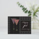 Dois copos coloridos de vinho com padrão preto de deco e Feliz Aniversário de 1rua em letra elegante. Design perfeito para brindar ao casal no seu primeiro aniversário.