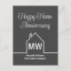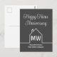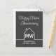 Este cartão postal de Feliz Aniversário de Casa cinza escuro é simples e sutil com seu monograma e nome da empresa imobiliária em branco. Ele apresenta um contorno branco minimalista e elegante de uma casa. Cartões postais modernos de negócios imobiliários para marketing de corretor para entrar em contato com clientes antigos.