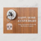 Cartoão postal de acompanhamento de feliz aniversário de casa para um corretor de imóveis enviar aos clientes antigos. Escritórios de empréstimos e empresas de hipotecas também podem usar esses cartões como uma ferramenta moderna de marketing para lembrar os clientes anteriores que podem estar prontos para refinanciar ou procurar uma nova casa. Esta fotografia apresenta uma chave em uma porta com um chaveiro pendente em forma de casa.