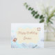 Duas linhas de texto personalizável na frente e um parágrafo de texto personalizado na parte traseira destacam este cartão-postal de aniversário com tema oceânico, com um caranguejo-solteiro, um conservador de vida e uma nota em uma garrafa flutuante.