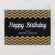Cartão Postal Personalizado Nome Feliz Aniversário Dourado Brilho Listras Preta Chevron