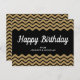 Cartão Postal Personalizado Nome Feliz Aniversário Dourado Brilho Listras Pretas Chevron