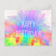 Cartão Postal Feliz Aniversário Explosão de Cores Arco-íris Abst