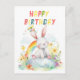 Cartão Postal Feliz Aniversário Feliz Coelhinho Coelho Arco-Íris