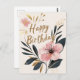 Cartão Postal Feliz Aniversário Floral Rosa Dourado