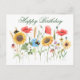 Cartão Postal Feliz Aniversário Flores Aquarela