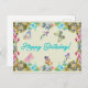 Cartão Postal Feliz Aniversário Flores Aquarela Vintage