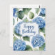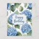Cartão Postal Feliz Aniversário Flores de Hortênsia Azul Aquarel