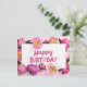 Cartão Postal Feliz Aniversário Flores de Peônia Rosa