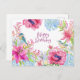 Cartão Postal Feliz Aniversário Flores e Pássaros Vibrantes em A