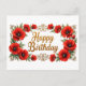 Cartão Postal Feliz Aniversário Flores Papoula Vermelha