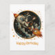 Cartão Postal Feliz Aniversário Foguete Espacial Bulldog Francês