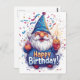 Cartão Postal Feliz Aniversário Gnomo: Design Caprichoso de Aniv