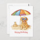 Cartão Postal Feliz Aniversário Golden Retriever Cão de Praia