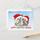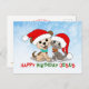 Imagem: BowWow e MeeYow celebram o aniversário do Cristo de Jesus. Gato e cão bonitinho com chapéus de Natal vermelhos dizendo "Feliz aniversário Jesus". Esta imagem de desenho animado envia uma mensagem de alegria de Natal. . O Natal Vermelho, Verde e Preto é cor do TEXTO: "Feliz aniversário Jesus". . A "Design" é um apelo aos homens, às mulheres e às crianças, a todas as idades, aos crentes de Jesus Cristo e à religião cristã. Apoiadores da Estação de Natal sendo sobre Jesus Cristo. (DESIGN por Paula Bragg)