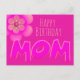Cartão Postal Feliz aniversário Mãe em Diversão, Texto Rosa Bril
