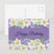 Cartão Postal Feliz Aniversário Narciso e Flores de Hortênsia