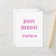 Cartão Postal Feliz Aniversário Nome Personalizado Branco Rosa Q