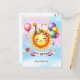 Torne o dia deles mais brilhante com nosso cartão postal Feliz Aniversário Nome Personalizado Sunshine com um sol sorridente usando um chapéu de festa de aniversário cercado por decorações, balões, estrelas e pura alegria e diversão!