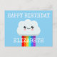 Ilustração de uma nuvem e arco-íris fofos com texto personalizado.