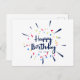 Letras pretas elegantes cercadas por confetes multicoloridos em fundo branco