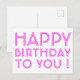 Cartão Postal "Feliz Aniversário Para Você!" Magenta e Branco