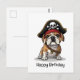 Cartão Postal Feliz Aniversário Pirata Crânio de Bulldog Inglês