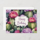 Cartão Postal Feliz Aniversário Plantas Suculentas, Flores de Ca