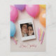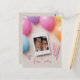 Este cartão postal de "Feliz Aniversário" apresenta uma foto poloraid personalizável que é rodeada por balões cor-de-rosa, azul, roxo e laranja e velas de aniversário. Você pode personalizar o design tanto carregando sua própria foto quanto inserindo seu próprio texto desejado.
