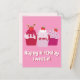 NewParkLane - Cartão postal de aniversário fofo, apresentando 3 bolos de morango rosa e vermelho, e com 'Feliz Aniversário Querido!' desejo em tipografia divertida.