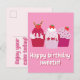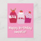 Cartão Postal Feliz Aniversário Querido Bolo de Morango Fofo