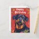 Saudação de aniversário Rottweiler. Um Rottweiler sorridente deseja Feliz Aniversário. Perfeito para todos os amantes de Rottweiler e proprietários de Rottweiler.
