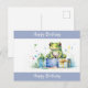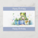 Cartão Postal Feliz Aniversário Sapo Verde Fofo com presentes em